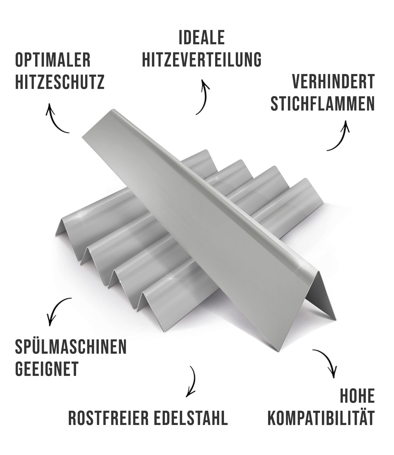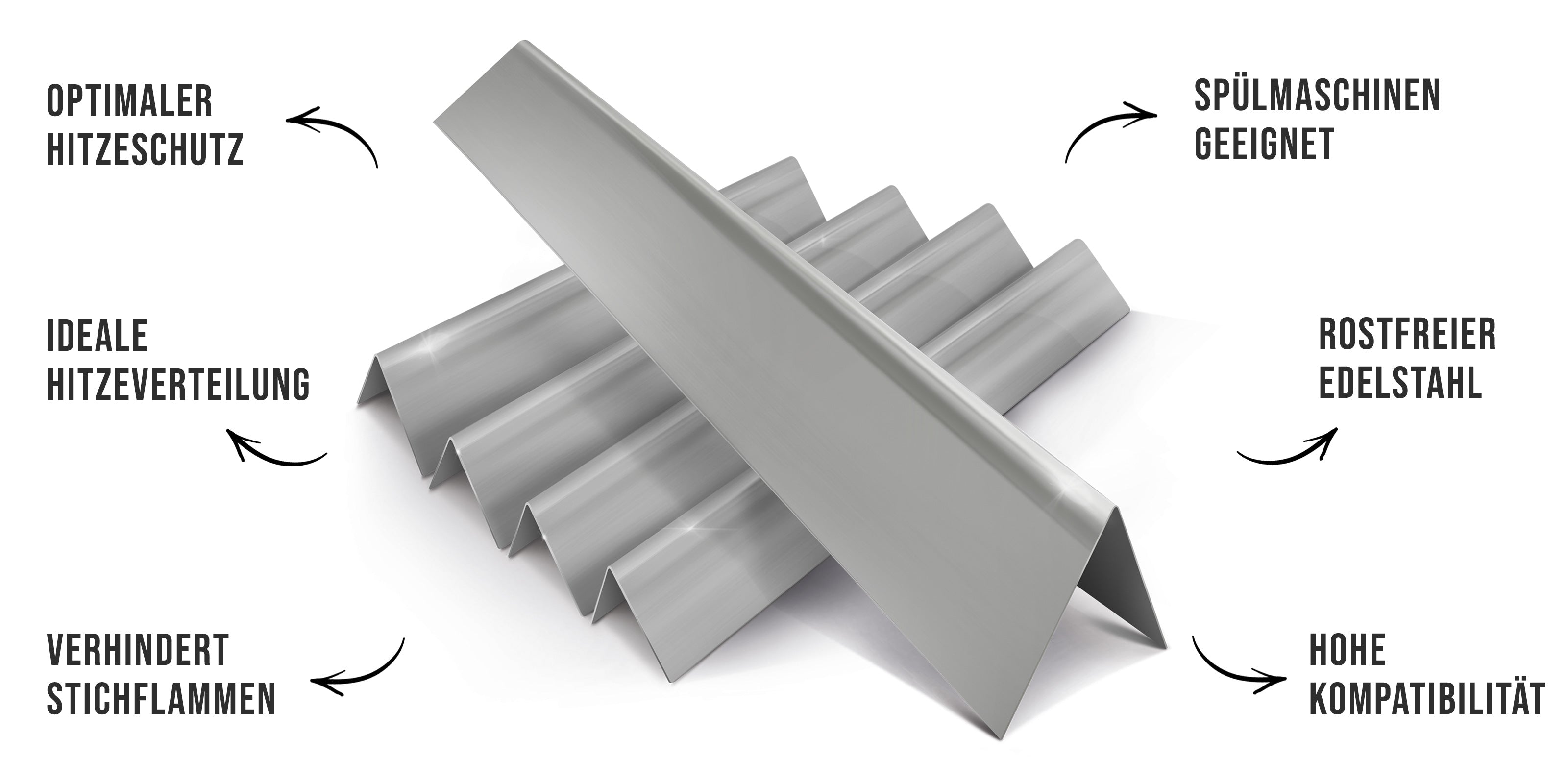Die Aromaschienen verdecken die Brenner des Grills auf voller Lรคnge und verhindern dadurch gezielt das entstehen von Stichflammen. Zusรคtzlich erhรถhst du die Lebensdauer deines Grills und hรคltst die Brenner sauber.