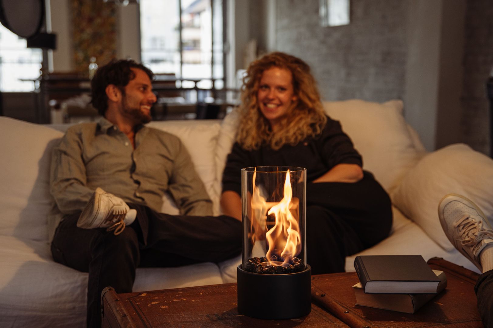 Angenehme Wärme, gemütliches Knistern & geselliges Beisammensein: Unser Tischfeuer bringt dir den Wohlfühleffekt eines Lagerfeuers im dekorativen Glaszylinder nach Hause.