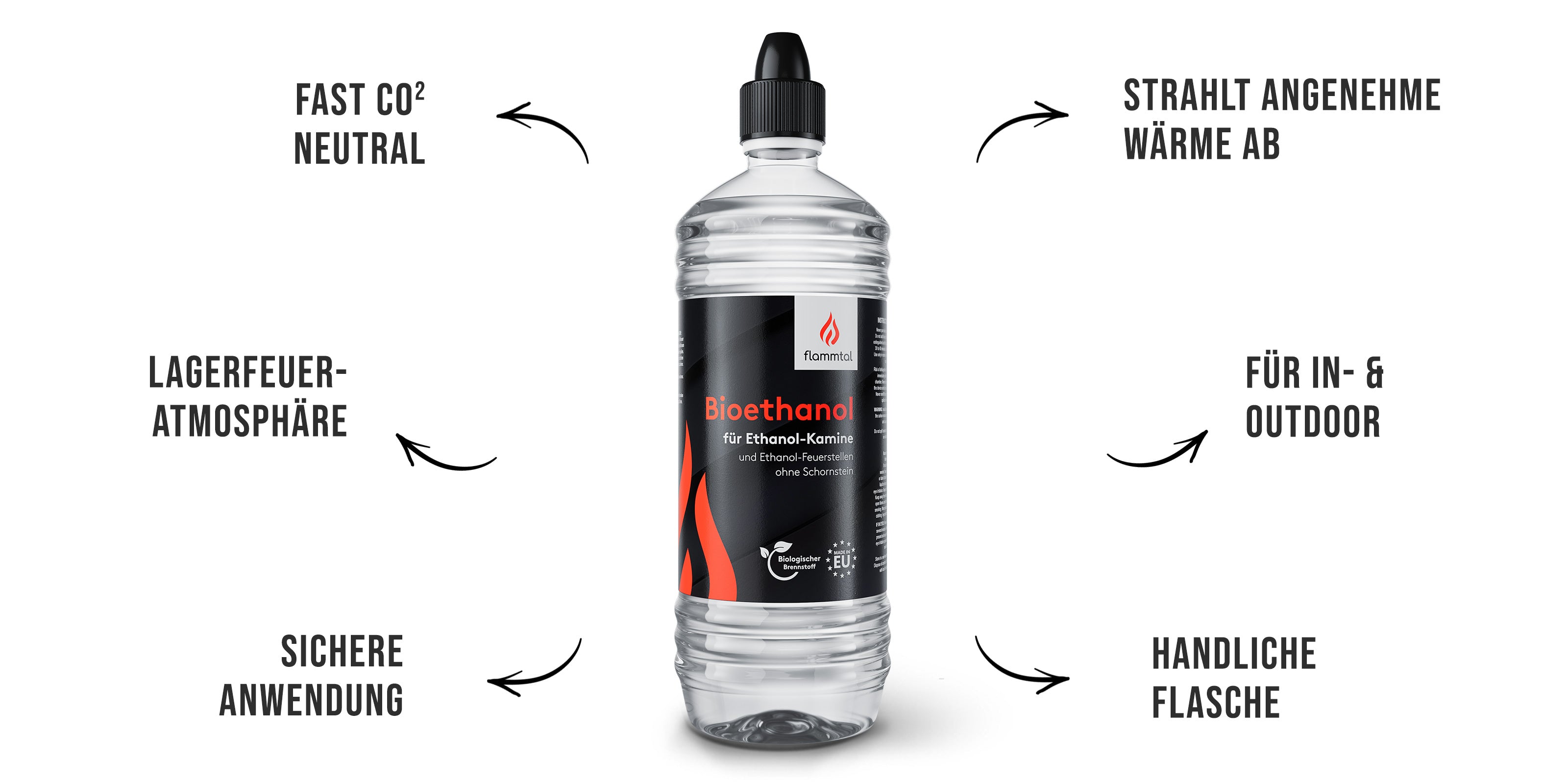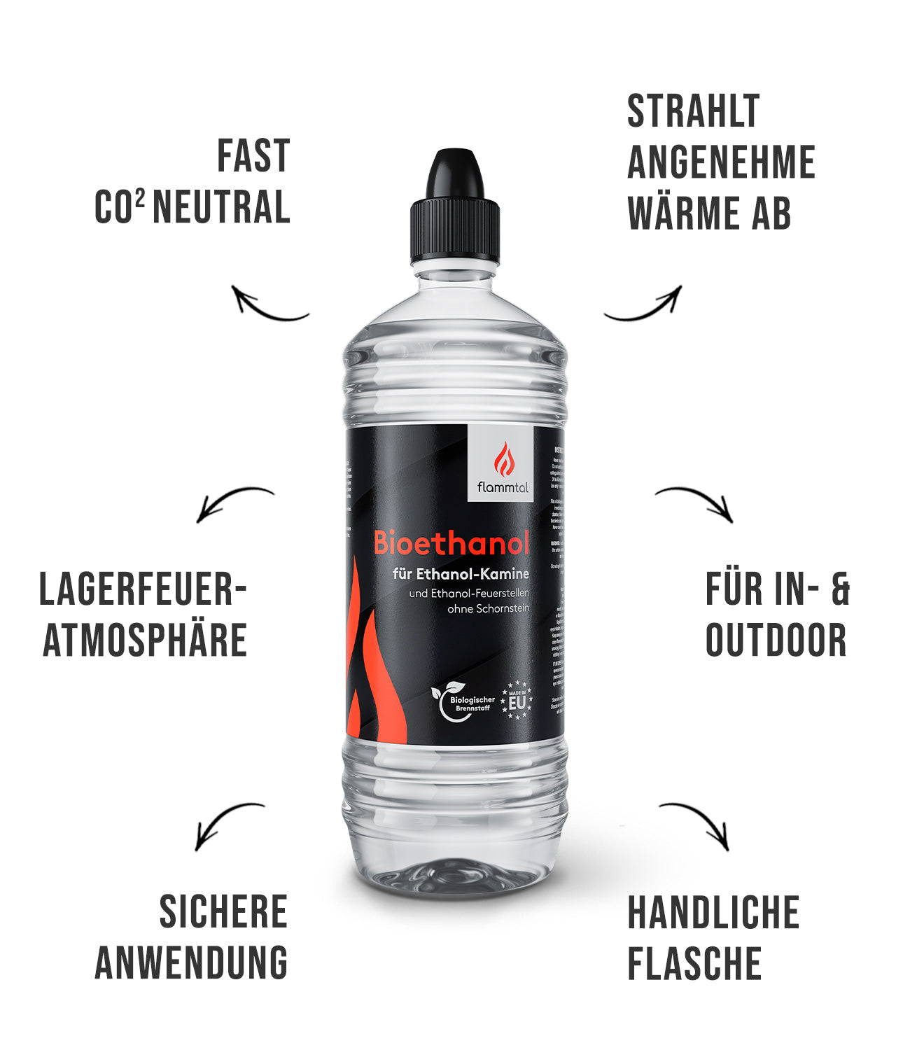 - 🔥 𝐈𝐃𝐄𝐀𝐋𝐄𝐒 𝐅𝐋𝐀𝐌𝐌𝐄𝐍𝐁𝐈𝐋𝐃 - Das flüssige Bioethanol ist ideal abgestimmt auf unsere Tischkamine und Standkamine. Außerdem erzeugt das Bio Ethanol ein wunderschönes und natürliches Flammenbild!