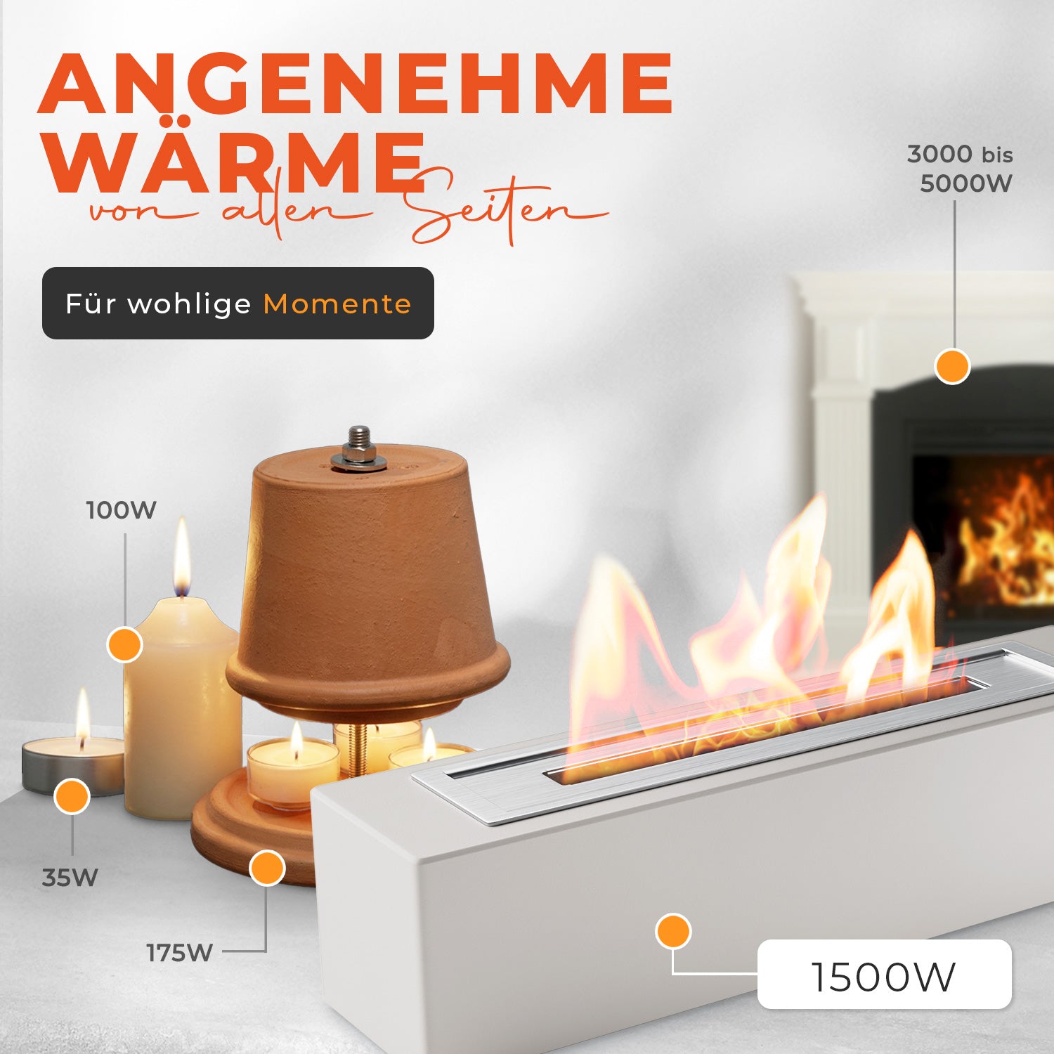 Mit einer Heizleistung von bis zu mehreren Kilowatt sorgen sie dafür, dass sich Dein Zuhause schnell und angenehm aufheizt – ganz ohne Kamin-Anschluss oder Schornstein. Die erzeugte Wärme verteilt sich gleichmäßig im Raum und schafft ein wohliges Raumklima, das Du an kalten Tagen und langen Winterabenden in vollen Zügen genießen kannst.