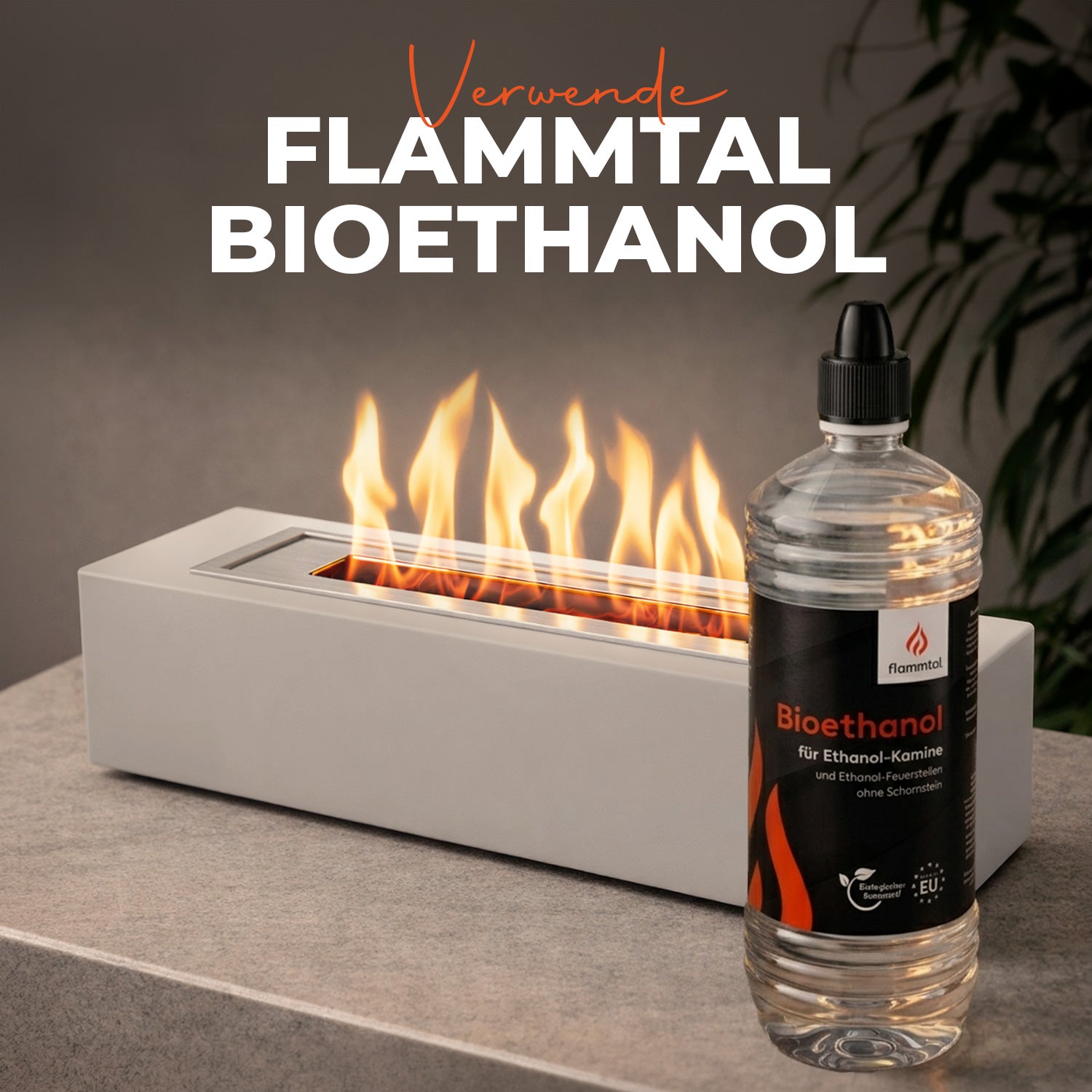 - 🔥 𝐇𝐎𝐂𝐇𝐖𝐄𝐑𝐓𝐈𝐆 & 𝐒𝐈𝐂𝐇𝐄𝐑 - Der flammtal Tischkamin Outdoor wärmend besteht aus hochwertigsten Materialien. Unsere deutsche Entwicklung ermöglicht die maximale Sicherheit des Bioethanol Kamin. Außerdem brennt der Tischkamin 100% geruchlos & rußfrei!
