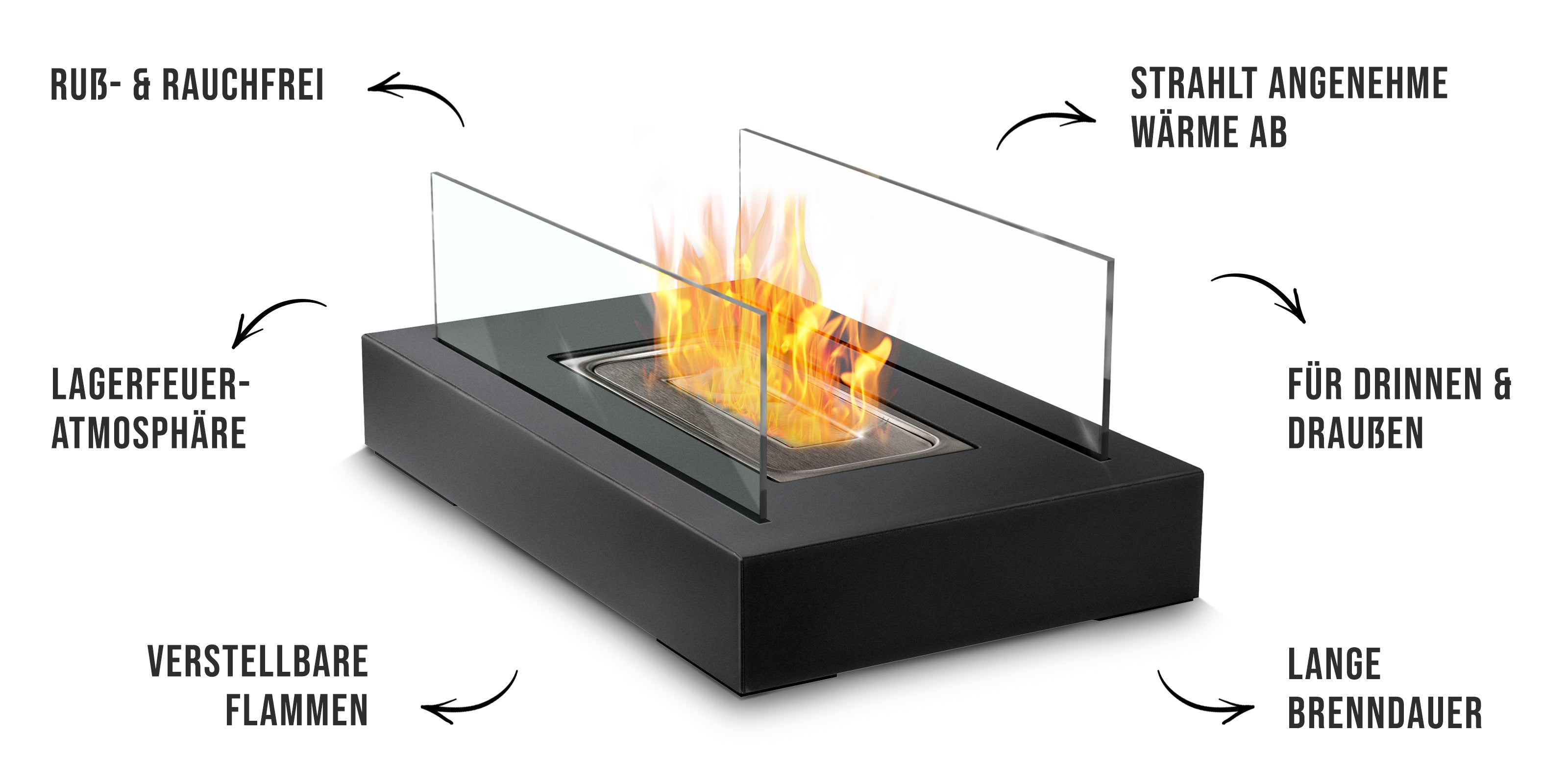 Dank nachhaltigem Bio-Ethanol können unsere Kamine bedenkenlos in Innenräumen, als auch draußen verwendet werden. Dabei brennt das Feuer geruchlos und ohne Rußentwicklung!