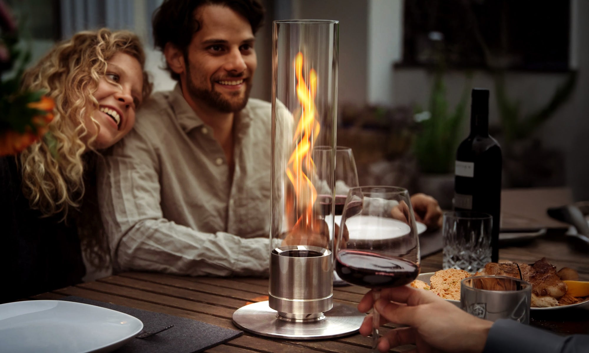 Angenehme Wärme, gemütliches Knistern & geselliges Beisammensein: Unser Tischfeuer bringt dir den Wohlfühleffekt eines Lagerfeuers im dekorativen Glaszylinder nach Hause.