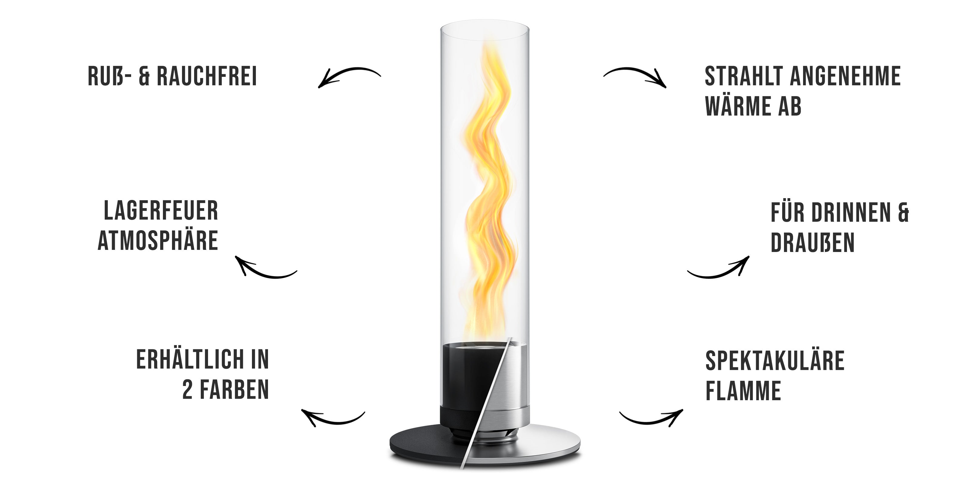 Das Tischfeuer ist ein spektakulärer Blickfang, der sauber brennt und langanhaltende Wärme zu allen Seiten abstrahlt. Und das sogar absolut geruchlos und rußfrei.